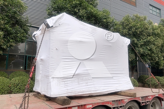 顎式破碎機的主軸應(yīng)與皮帶輪和飛輪一同取下,把電動機(連同皮帶)沿滑軌盡量向破碎機移近,取下三角皮帶,然后用吊車把主軸提起。